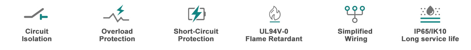Features a PC+ABS engineering plastic enclosure with flame-retardant, high-temperature resistant, UV-resistant, and impact-resistant properties, suitable for harsh outdoor environments
