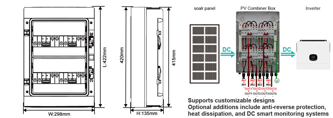 Standard models incorporate built-in fuses, surge protectors, circuit breakers, and other DC components, providing multiple protections against short circuits, overloads, and lightning strikes. Optional modules include smart monitoring, cooling, and anti-reverse functions
